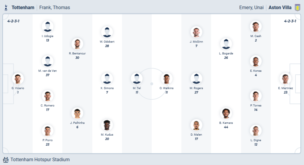 For Tottenham, Rodrigo Bentancur and Xavi Simons are expected to play crucial roles, while Aston Villa will rely on Ollie Watkins and John McGinn to lead their attack.